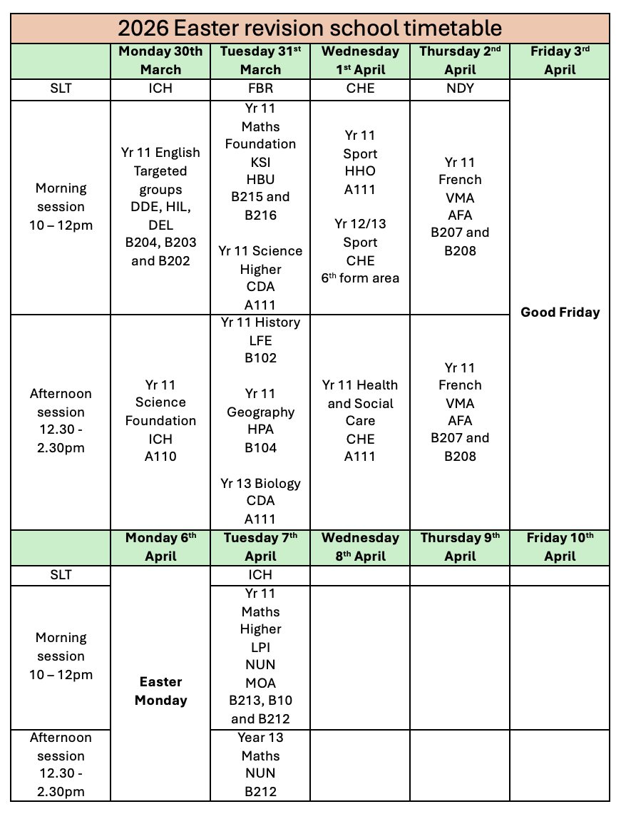 | Easter Revision Timetable | Timetable | Download HERE |