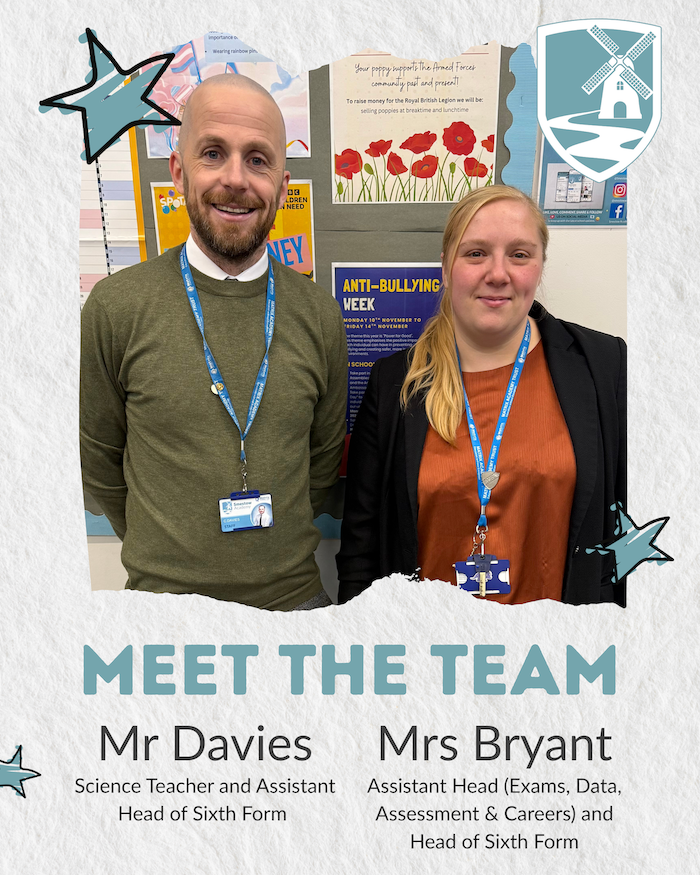 Meet our Head of 6th form and Assistant Head of 6th form - Mrs Bryant and Mr Davies!