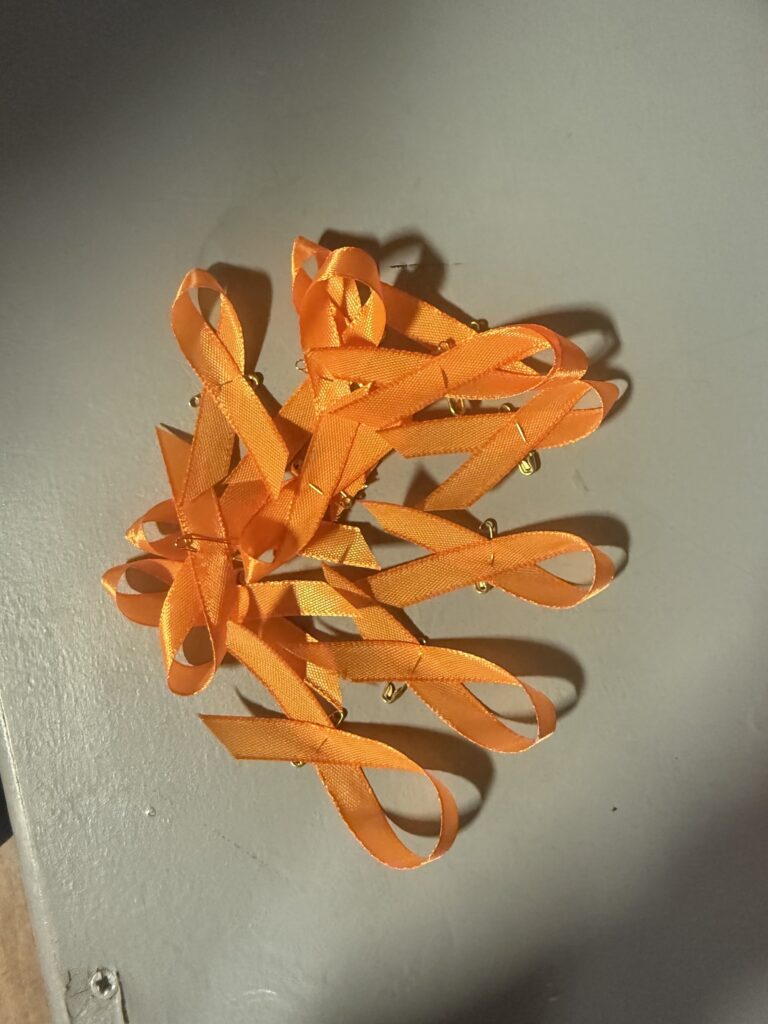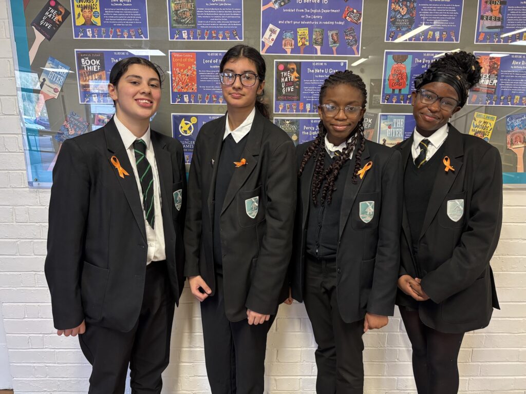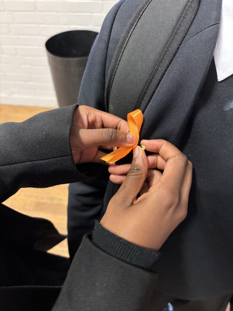 Pupils wore orange ribbons to raise awareness of the campaign and support bringing an end to domestic violence against women and children.